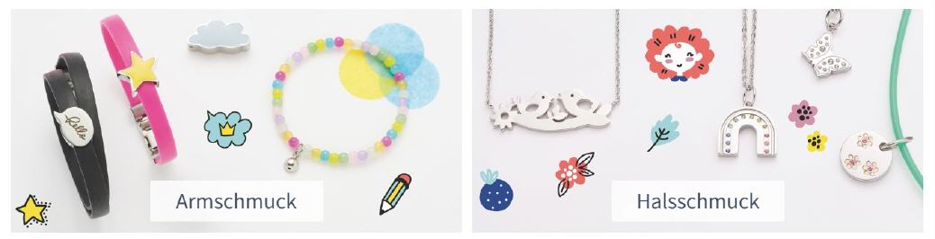 Für die kleinen Damen haben wir in unserem >>MAGNETSCHMUCK SHOP schöne Armbänder mit Herz-Design oder Tierpfote, Herz-Kettenanhänger und Ohrringe mit Herz, Stern, Elefant oder Pandaoptik, Kinderarmbänder mit Slider in Stern-, Wölkchen-, Herz- und Blumenform! Für coole Jungs gibt es Armbänder mit Fußball-Slider oder einen Kettenanhänger in Fußballoptik!